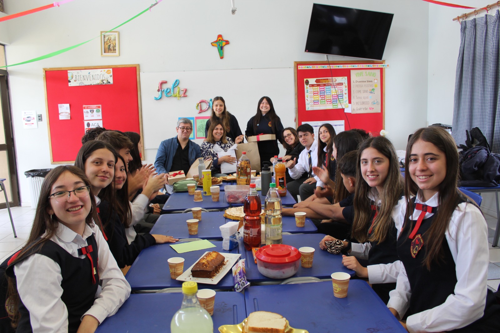 Posteriormente, los alumnos y apoderados prepararon celebraciones especiales en las salas de las clases para compartir con sus profesores y, finalmente, realizamos un acto cívico en donde participó todo el colegio para conmemorar este día y relevar la importancia de la labor docente en la construcción de la sociedad.