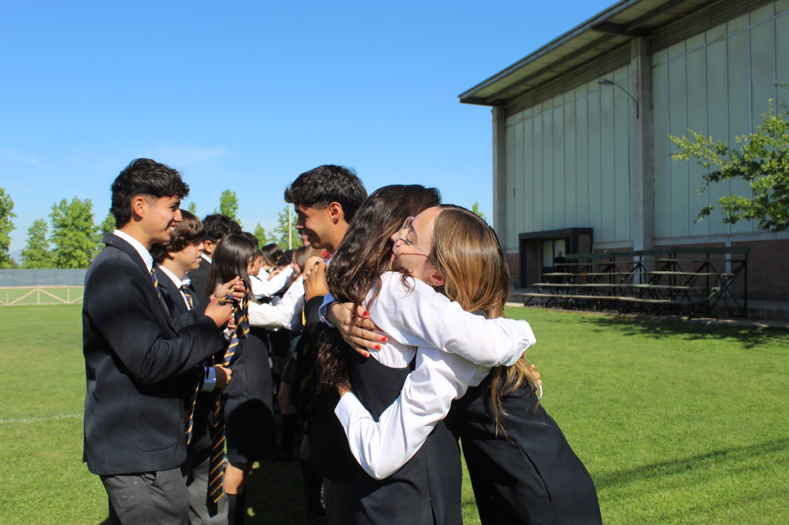 Luego, se realizó el intercambio de corbatas y corbatines para pasar la posta a quienes serán los nuevos IV medios el año 2026, realizando el traspaso con los alumnos de III medio, en un momento de mucha felicidad y emoción para ambas generaciones.